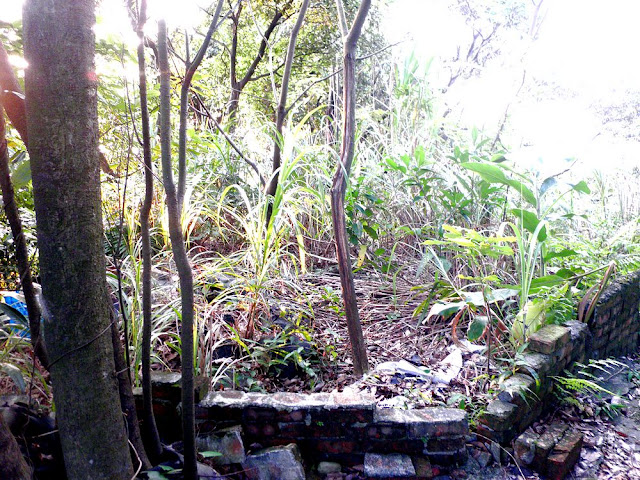 獅山山頂沒有基石,聽說原來有個屋子,我去時只看到殘垣斷壁,因為這不是熱門路線,路已漸被草淹沒,我沒帶登山杖,又怕草長藏蛇,只得撿一枝樹枝撥草,驚驚牠們,識相的蛇,自己快快離去,碰到不識相的,我也只好快快逃離。
